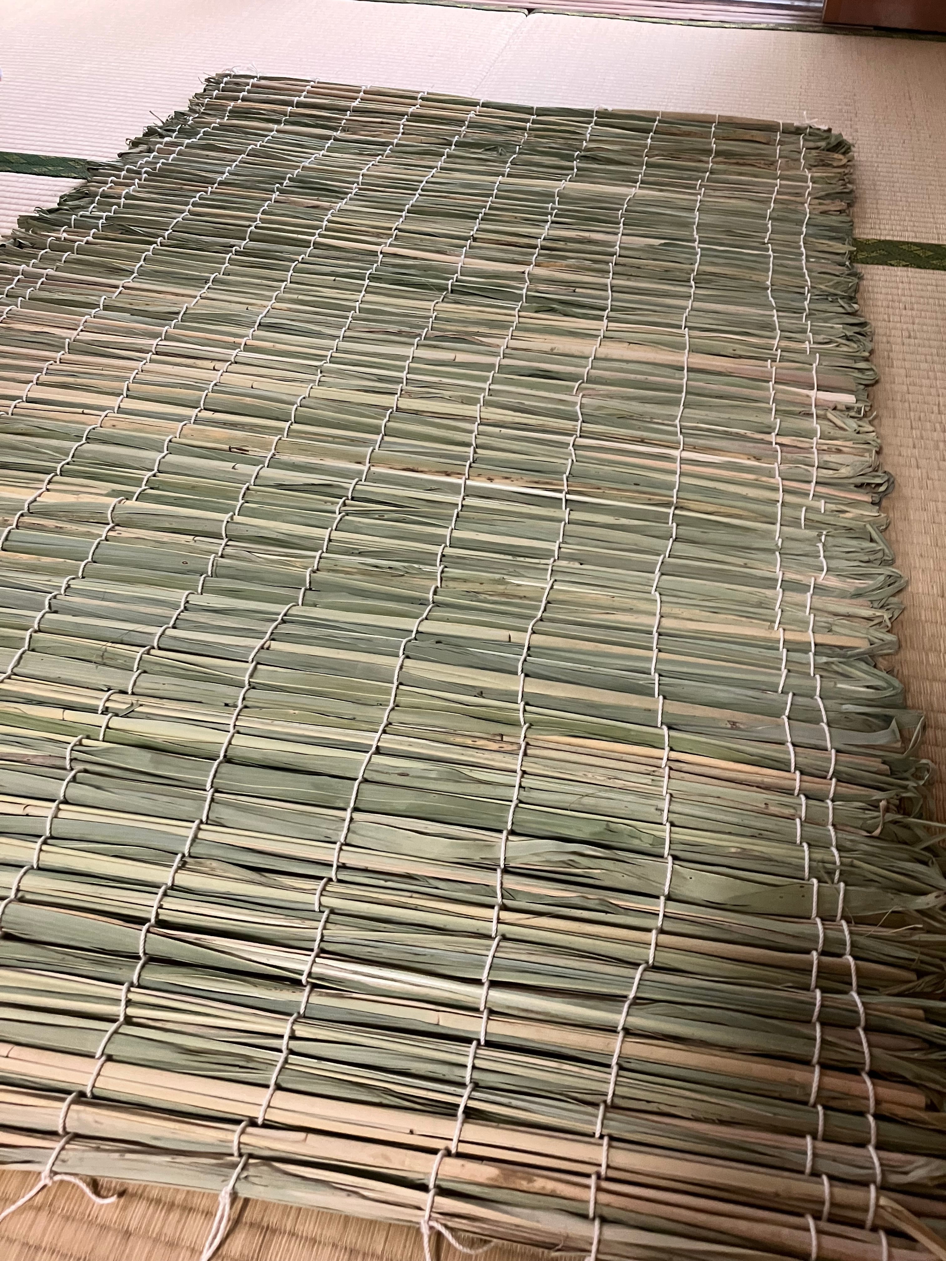 *真菰の特性を生かすため加工をせずに使用していますので、使用のたびに葉が落ちてくることがあります。真菰茣蓙の特性としてその変化も楽しんでいただければと思います。